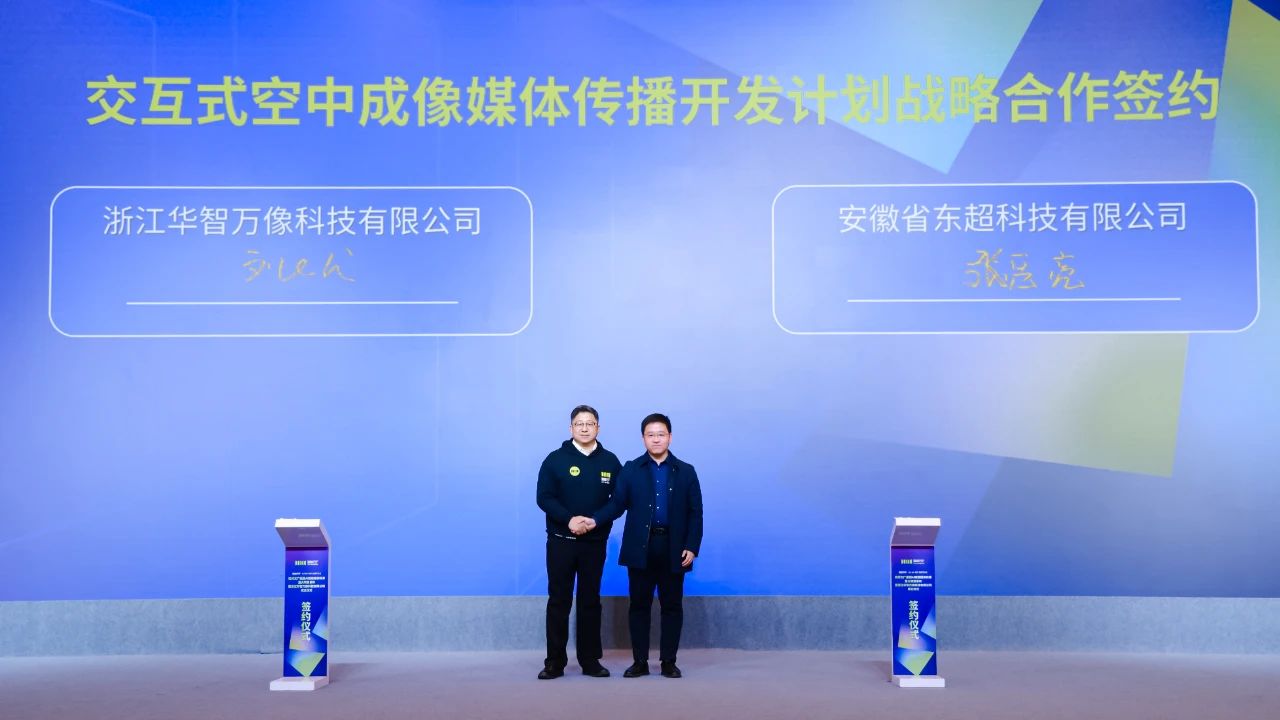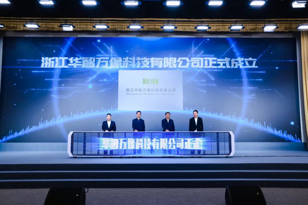市委常委、宣传部部长黄海峰出席活动,与杭州高新区(滨江)区党委书记章登峰,杭州市科技局党组书记王歆,杭州文化广播电视集团党委书记、总裁赵宇共同为浙江华智万像科技有限公司揭牌,标志着杭州文广集团人工智能科技项目正式开始进入产业化运作。