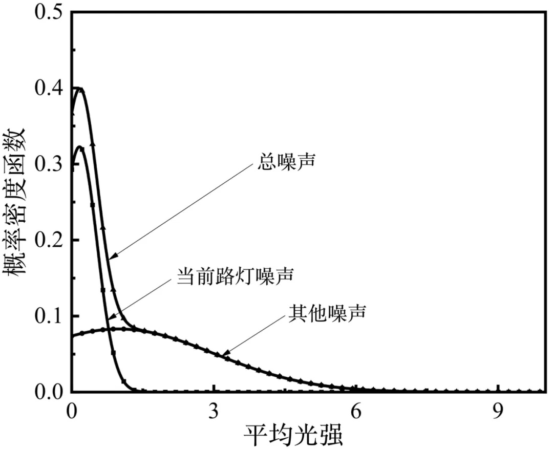 光通信中信源是双极性的,由于光信号的平方律检测特性,光强没有负值,属于单极性信号,这样其噪声均值就是大于0的了。人们为了处理方便,往往将光信道的噪声视为0均值高斯分布,这样会带来一系列错误的结论。柯熙政通过逻辑推理和实验测量,提出了一种被称为“柯氏分布”的分布模式,用以描述可见光通信的信道噪声。其中一个分量表示汽车当前所在路灯的噪声分布,另一个表示其他车辆及路灯的噪声分布。通过在全国几十个城市测量,结果验证了这一模型的合理性。如图2所示,人们研究光通信的时候,可以根据这一模型加入不同地区的噪声参数,为可见光通信提供了实验依据。