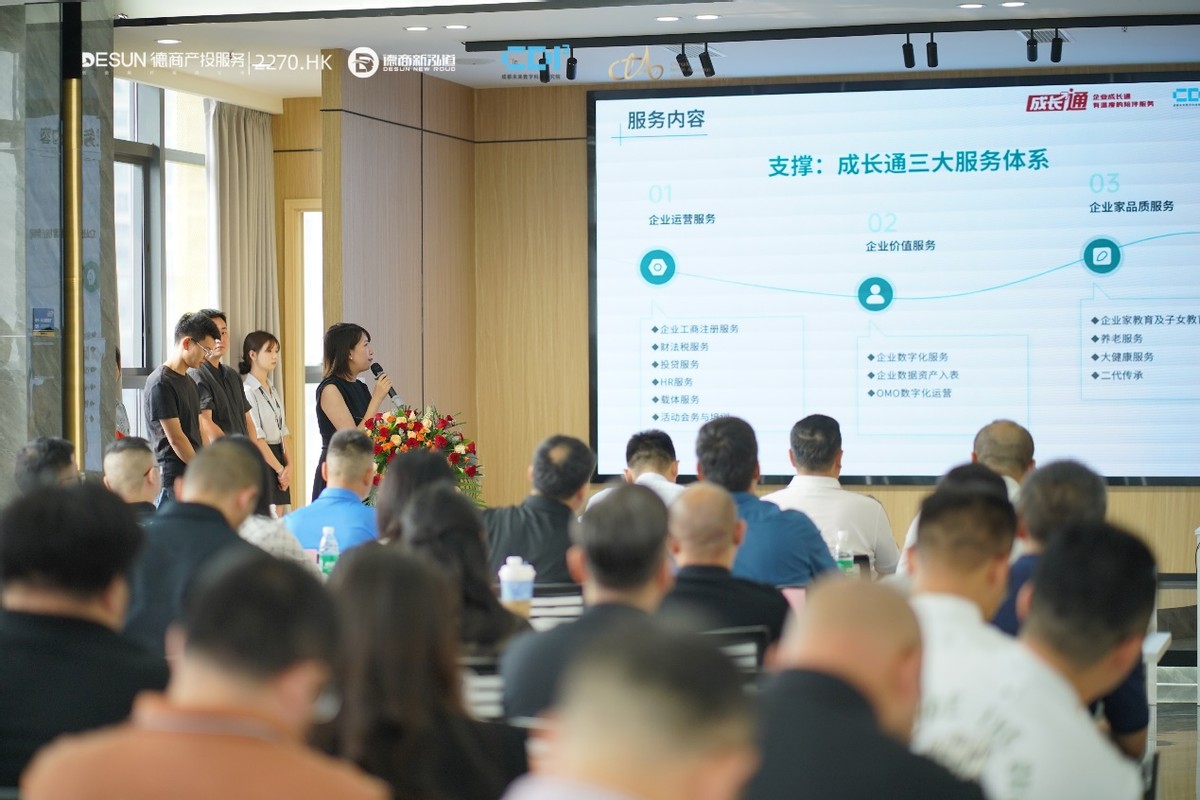 据德商新泓道副总经理何健介绍,目前德商产业运营服务的数字经济产业园,园区覆盖成都六个核心主城区域,有23栋现代化楼宇,汇聚 3000 多家企业,涵盖多个数字经济领域的领军企业和创新型企业。在空间打造上,企业成长通服务通过“硬载体、软服务”为入驻小微企业打造共享会议室、灵活办公空间、社群运营等,目前在管23栋楼宇已全面实现办公共享的无缝对接。