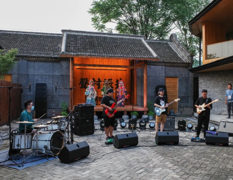 摇滚乐队与怀梆剧团同台演唱。