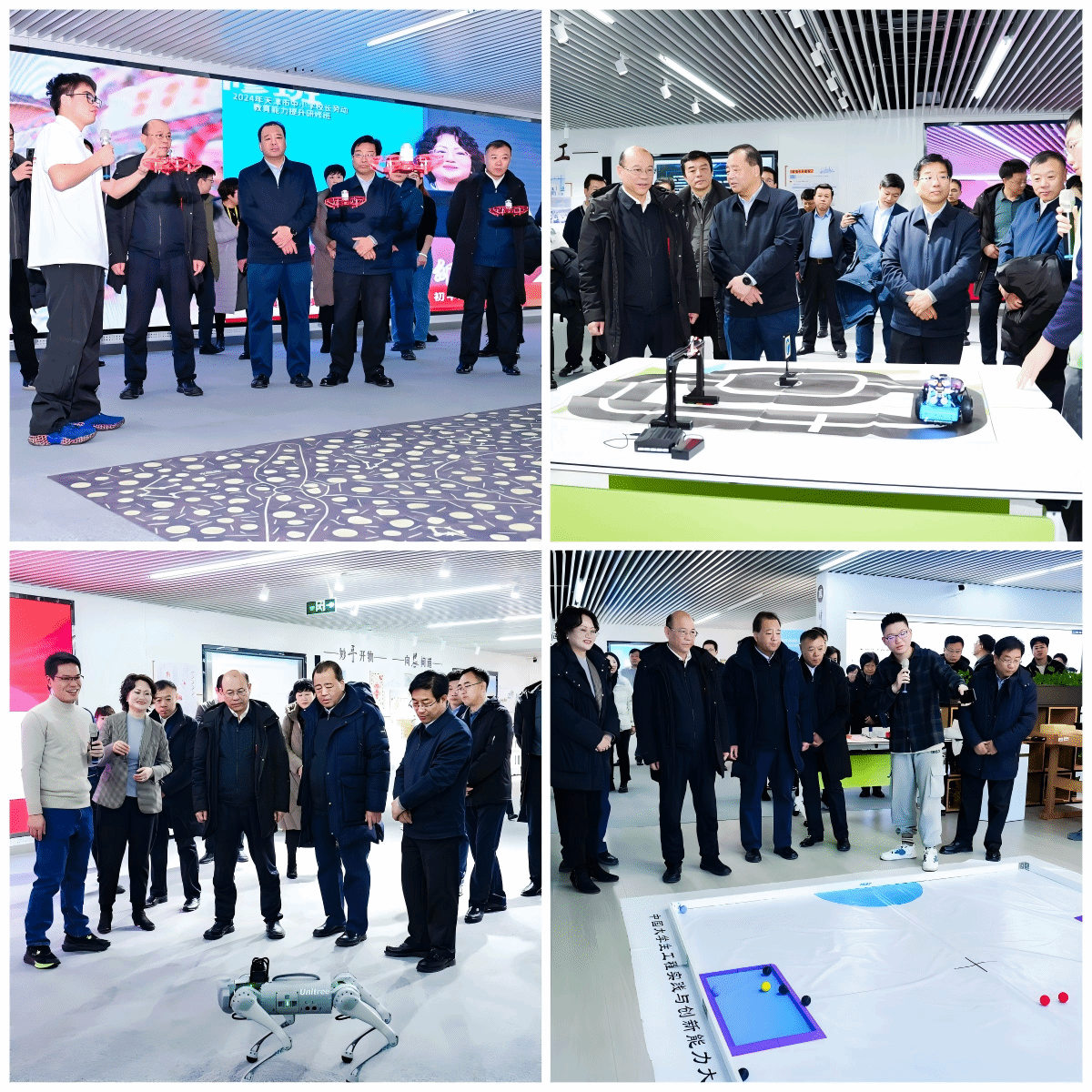 会前,全体与会嘉宾参观了设在天职师大体美劳教育中心“劳动教育综合情景工作坊”的天津市劳动教育非物质文化遗产主题成果展和天职师大“专业+劳动教育”科创主题成果展。16个区教育局通过丽屏形式展示区域劳动教育工作经验与成果,展览涵盖中小学校代表、市属学校代表、河西区文化馆等69个非遗手工劳动主题成果。天职师大电子工程学院、机械工程学院、自动化与电气工程学院、信息技术工程学院(软件工程学院)、汽车与交通学院、电子工程学院、艺术学院、工程实训中心及附属高级技术学校(技师学院)等8个教学单位及附属单位的22个项目参与“专业+劳动教育”科创主题成果展。