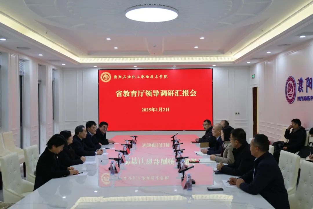 1月2日,河南省委教育工委专职副书记尹洪斌到濮阳石油化工职业技术学院调研。省教育厅人事处四级调研员张银涛、职业教育与成人教育处副处长任远,濮阳市教育局党组书记葛磊、局长杜晓玲参加调研。濮阳石油化工职业技术学院党委书记李殿峰、副院长李丹秋、纪委书记刘赏林、副院长赵怀森,校领导高万明、鲁宁等班子成员及相关处室负责人陪同调研。