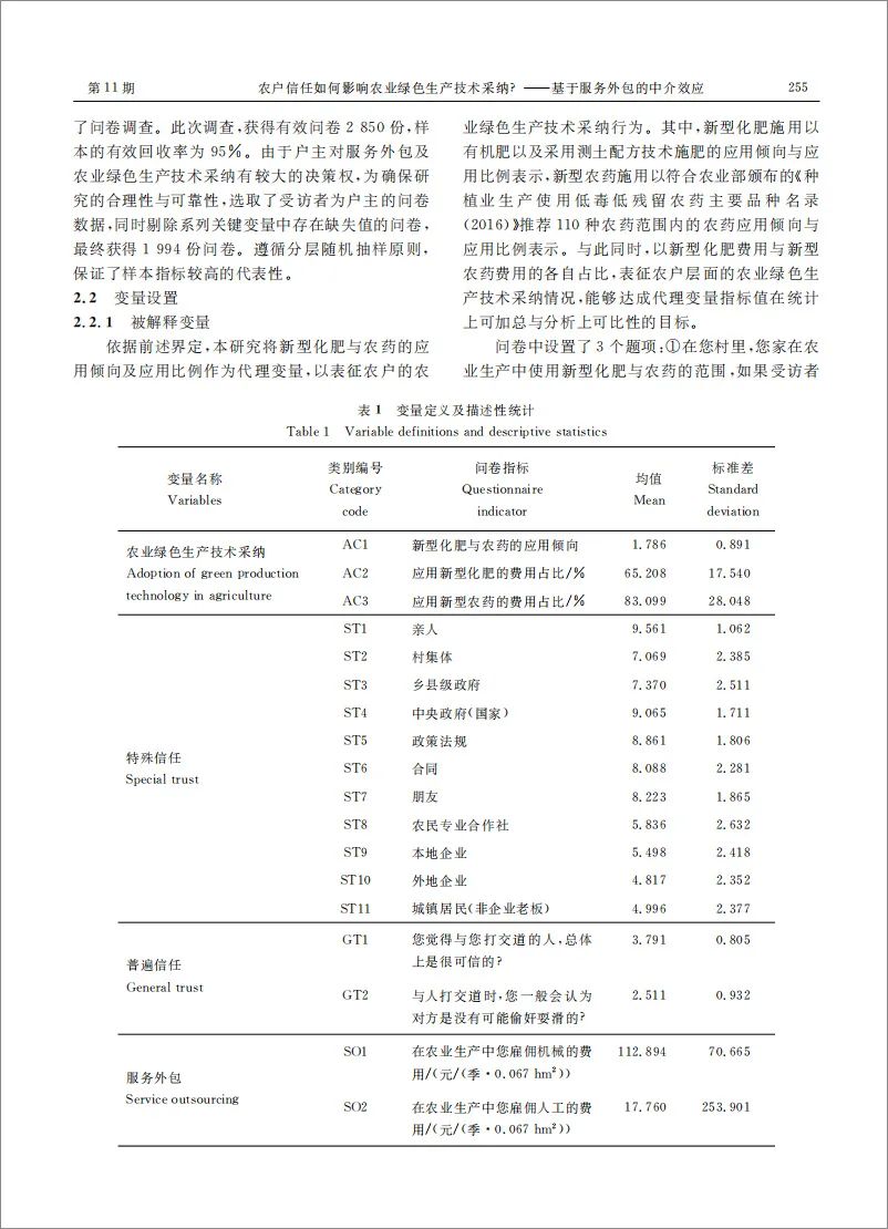 2020年立项的国家社科基金课题“三重资源约束下种粮农户服务外包选择机理与效应研究”的结项报告中的数据,以及2022年硕士研究生谢秀丽与导师合作发表在《中国农业大学学报》的论文数据均来源于此,这些研究成果对指导农业生产实践都起到了积极作用。