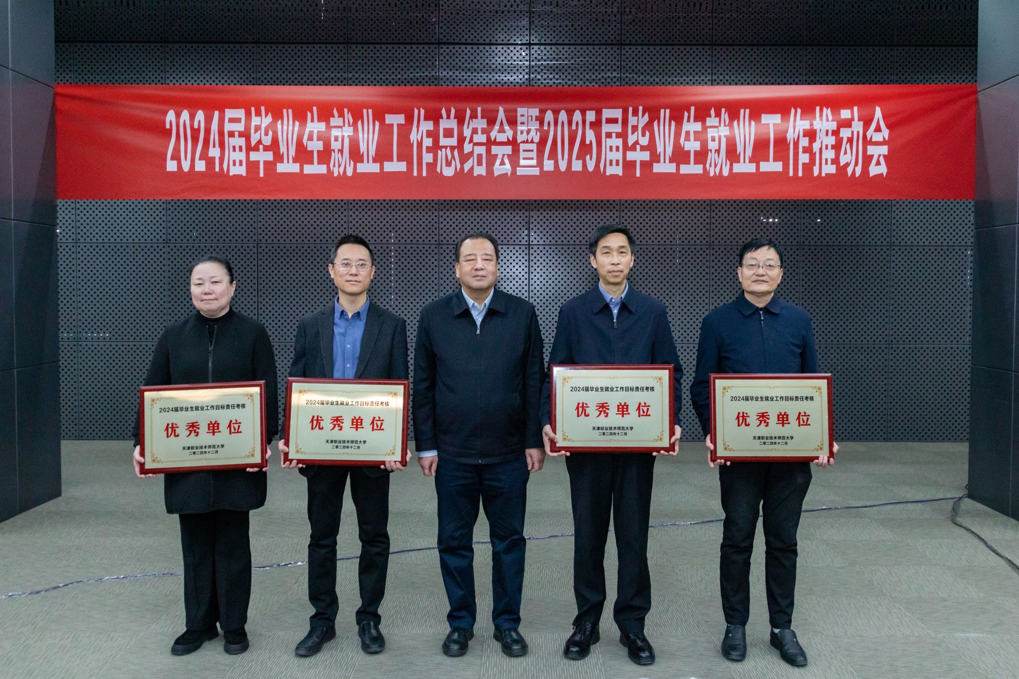 张金刚代表学校党委充分肯定了2024届毕业生就业工作取得的成果成效,对获奖的先进单位和个人表示祝贺,对关心支持并为毕业生就业工作辛勤付出、无私奉献的同志们表示感谢。张金刚强调,天职师大深入贯彻落实党中央、国务院“稳就业”“保就业”决策部署,坚持实施就业优先战略,把促进高质量充分就业视作推动教育强国建设、服务职业教育高质量发展的关键环节,真抓实干推动2025届毕业生高质量充分就业。一是要深化认识,科学研判,切实增强做好毕业生就业工作的紧迫感、责任感和使命感。要深刻领会并准确把握做好毕业生就业工作重大政治意义,把推进就业工作视为份内职责和共担使命,以毕业生高质量充分就业的实干实绩体现人才培养成果和教育工作成效。二是要锚定目标,多措并举,充分激发提升毕业生就业工作质量的积极性、主动性和创新性。要聚焦当前促就业工作的重点难点,围绕考研升学、重点群体学生就业帮扶、人才培养与社会需求、就业教育和宣传引导、访企拓岗转化等方面要强举措、出实招,集全校之力,为毕业生顺利就业保驾护航。三是要压实责任,强化保障,推动就业工作取得新进展、新突破和新成效。就业是民生之本,是社会稳定的重要保障。要提高政治站位,明确就业工作的重大意义;要压实工作责任,确保就业工作落实到位;要强化组织保障,推动就业工作取得更好成效。要切实增强政治自觉、思想自觉、行动自觉,挂图作战,倒排工期,落实落细落稳各项就业举措,不折不扣完成2025届毕业生就业工作目标。
