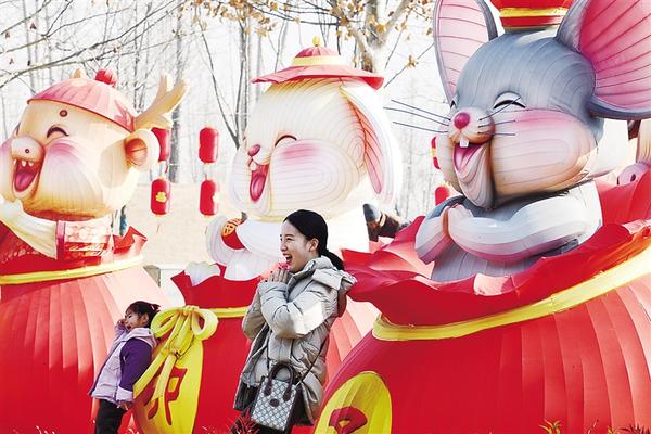 1月5日上午,游人在引黄调蓄湖十二生肖灯笼旁拍照。随着春节临近,引黄调蓄湖花灯璀璨,一片花灯世界,浓厚的新年氛围,吸引了市民前来游玩。周口日报全媒体记者 梁照曾 摄