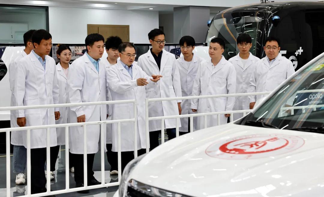 ▲赵祥模(前排左三)指导团队开展自动驾驶汽车台架测试