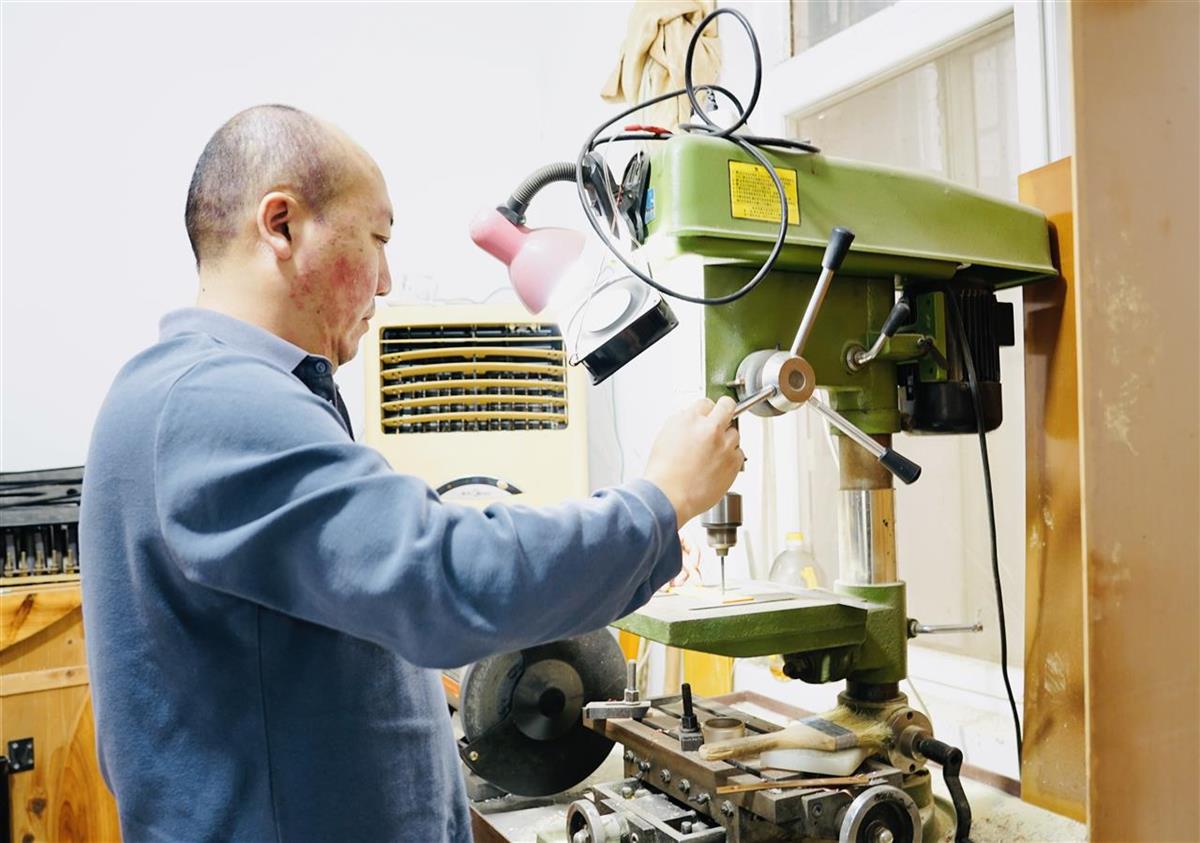 宋庆国正在操作台式电钻