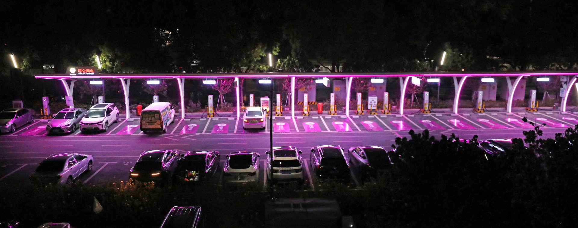 福田区笔架山公园内,华为光储充超级充电站试运营。深圳特区报记者 曹鹏飞 摄