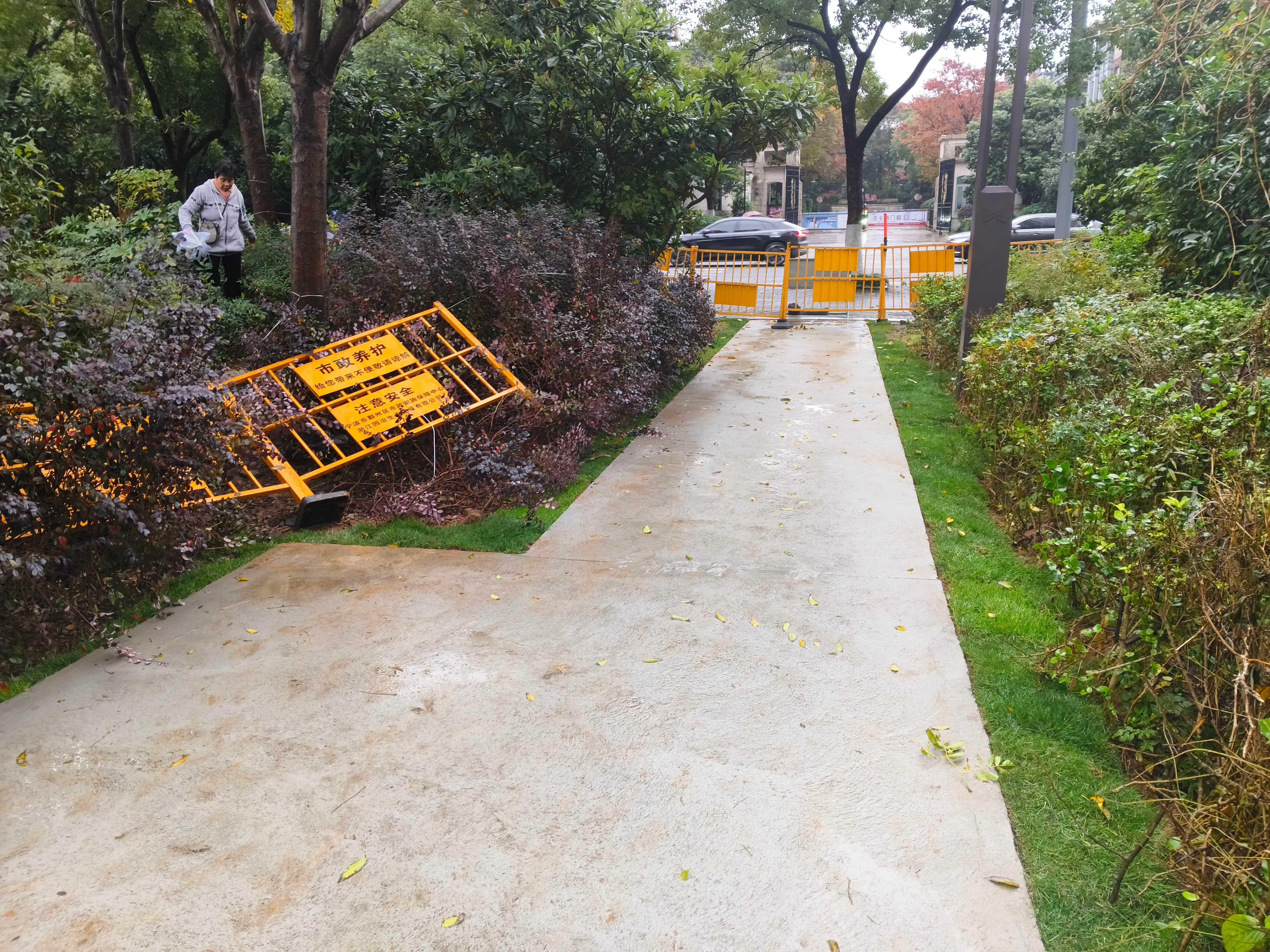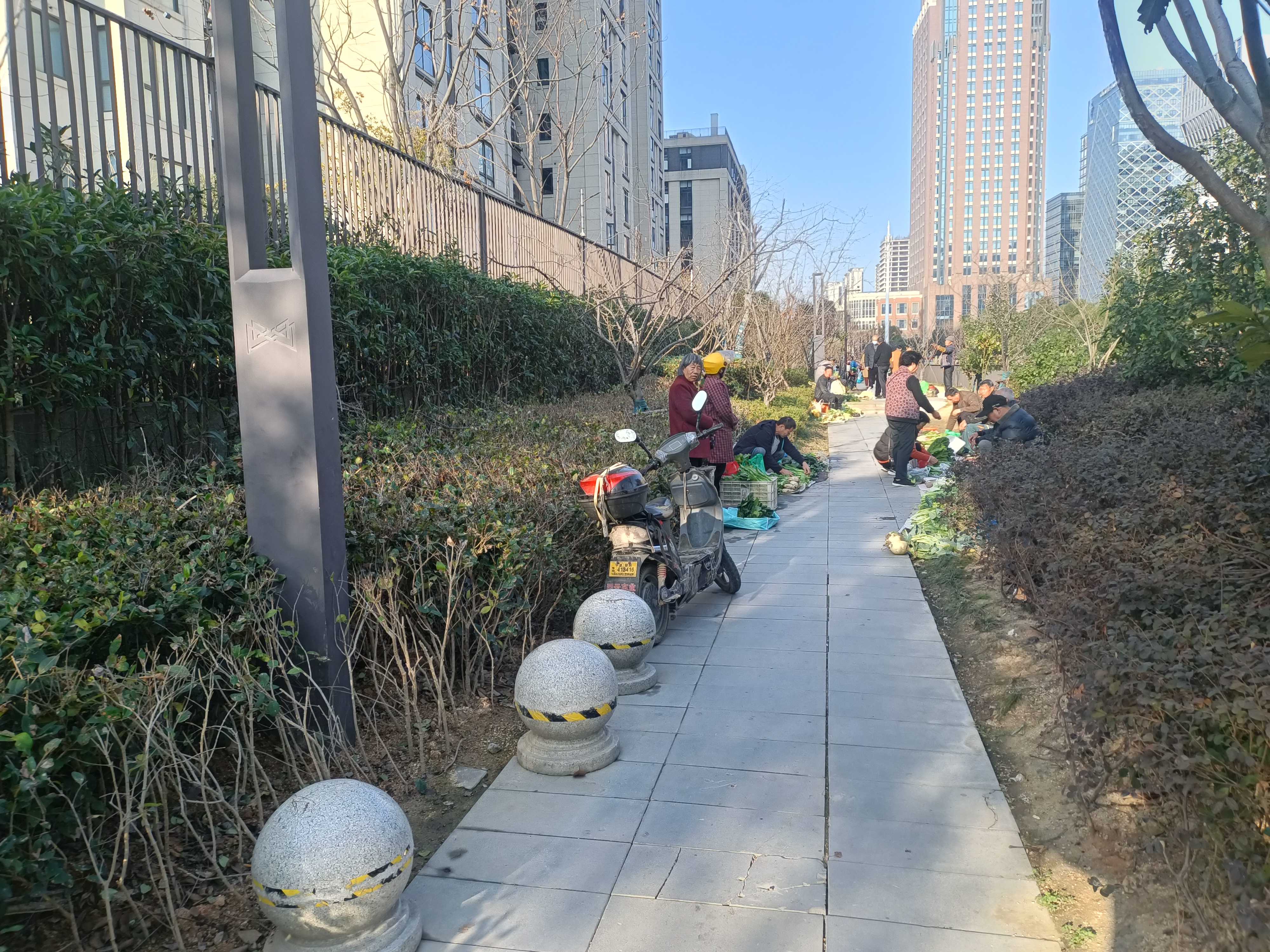 这条买菜路是连接学仕九里小区、雍城世家、南裕、学府等周边小区和菜市场的重要通道。但平日里,因为人流量大、电瓶车往来多、导致草坪被破坏践踏、道路破损严重、环境卫生堪忧,管理难度很大。一度,这里成为周边流动摊贩的聚集地,吵闹声让旁边居民苦不堪言。
