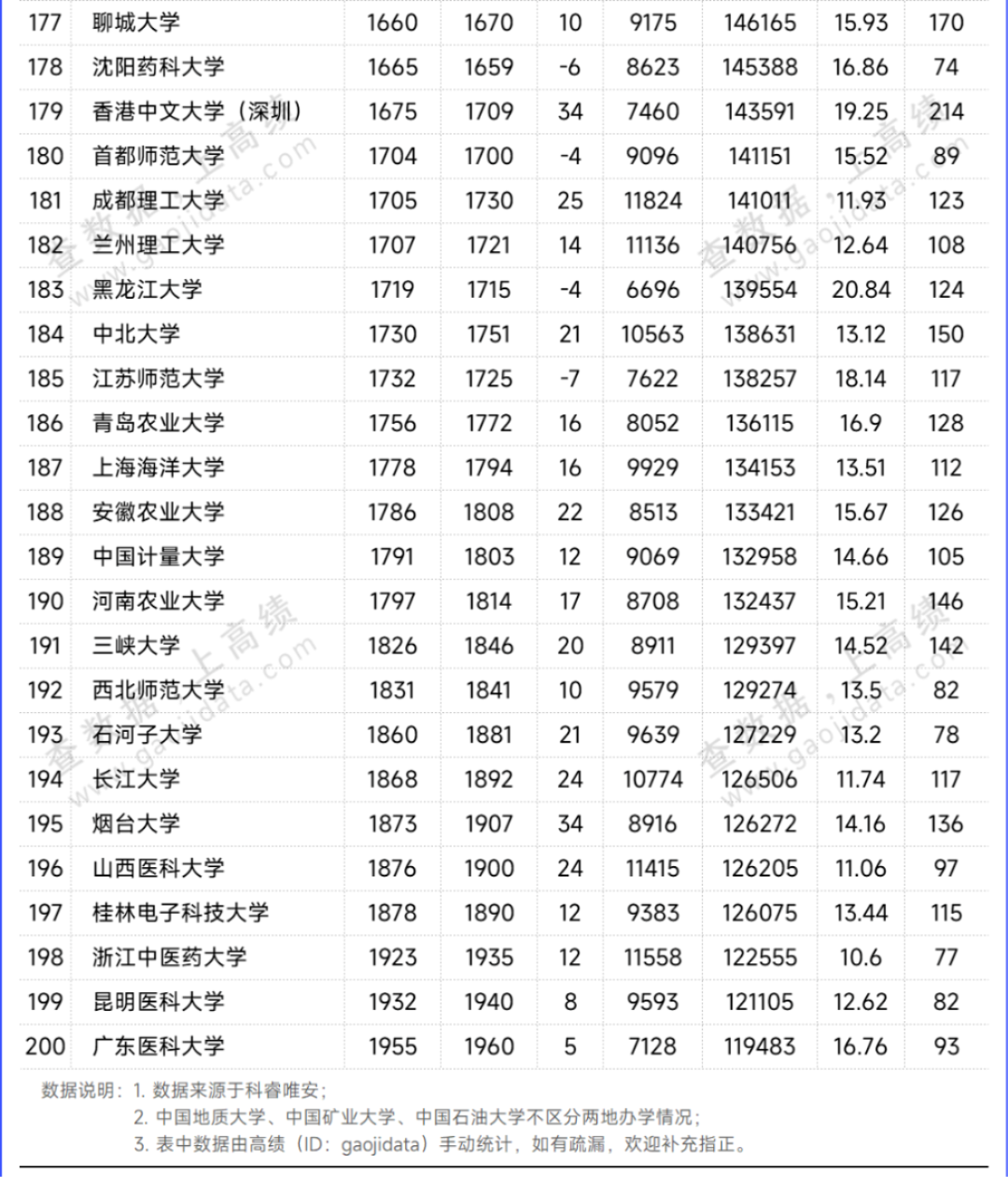本次中国内地高校ESI 200强排名前5的高校中,中国科学院大学、上海交通大学和浙江大学的全球排名各进步1位。所有高校中,进步最大的是昆明理工大学,排名上升了51个位次,其次是香港中文大学(深圳)和烟台大学,国际排名上升了34个位次。新疆大学本次排名上升了31个位次。齐鲁工业大学、南华大学各上升了26个位次。
