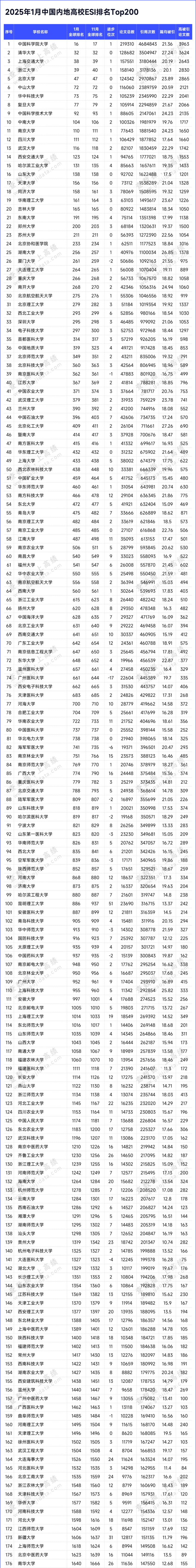 1月9日,科睿唯安(Clarivate Analytics)公布了2025年1月的ESI最新数据。ESI(基本科学指标数据库)是目前世界范围内普遍用以评价高校、学术机构、国家或地区国际学术水平及影响力的重要评价指标工具之一。本次数据覆盖时间范围为2014年1月到2024年10月。