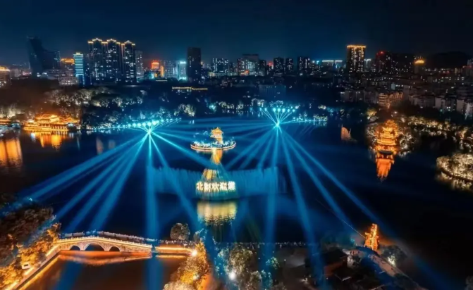 特色活动:除水月洲广场设新春打卡点和主题景观、水幕光影秀外,大年初一至初三,持续开展“蛇舞新春”贺新春系列活动,包括舞龙舞狮、财神派红包、汉服旅拍、非遗戏曲、文创市集等。