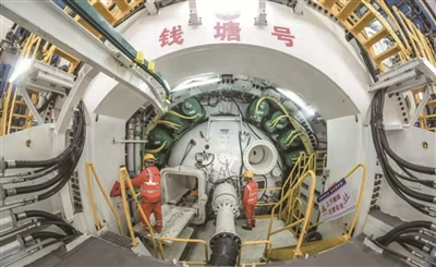 据悉,这条盾构隧道最大埋深49米,承受最大水土压力4.5巴(压强单位),与既有公路钱江隧道并行最小距离仅有43米,不仅要穿越钱塘江江北大堤,而且涉及国家级重点文物保护单位鱼鳞石塘……