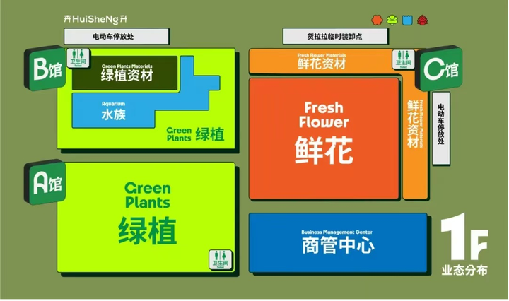 坐落于成都市经开区南四路1888号区,全川最大的鲜切花批发市场。园区总面积15万平米,已入驻商家600余户。场内布局为A馆- 绿植,B馆- 绿植&水族&美学空间,C馆- 鲜花&花艺。保留所有功能性业态基础下,将花植为媒介展陈艺术装置,传播美学文化与生活新方式。