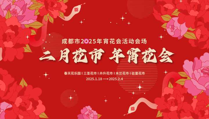 据悉,2025年成都市年宵花会由成都市花卉协会牵头组织,涵盖天府新区、锦江区、龙泉驿区、郫都区、新都区的成都五大花市,包括春天花乐园、木兰花卉批发市场、三圣花市、卉升花市、驻里花木集市,花市面积约170万平方米,超过2000家商户共同参与,市民朋友可以就近选择,采购年花。