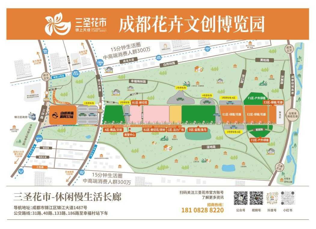 自驾导航:成都市锦江区锦江大道1487号(三圣花市)。