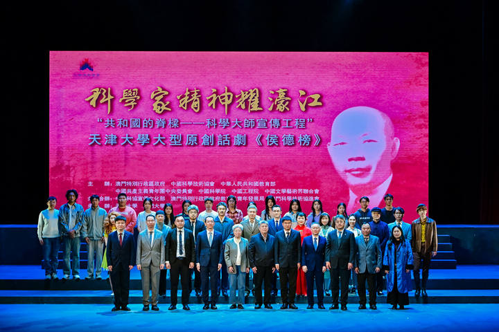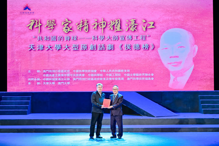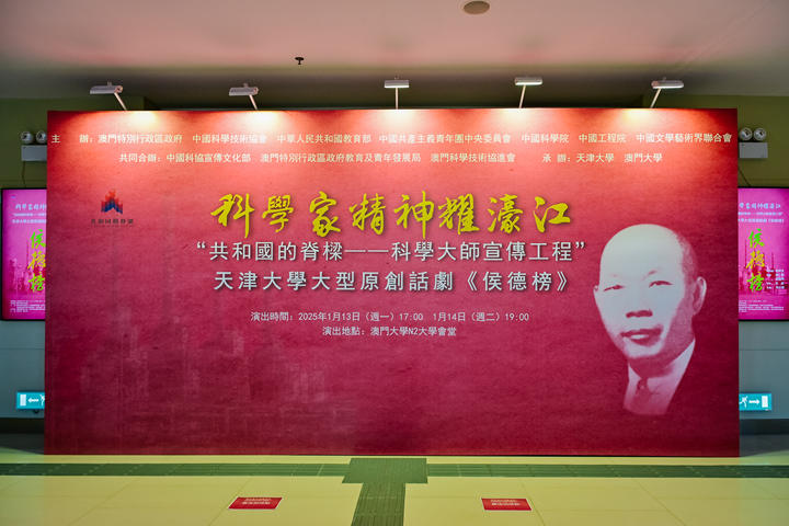 2025年1月13日、14日,“共和国的脊梁——科学大师宣传工程”剧目之一、天津大学原创话剧《侯德榜》连续两天在澳门大学N2大学会堂举办演出专场。现场座无虚席,千余名师生到场观看,共同走近侯德榜先生的一生,感悟科学家精神。此次活动由澳门特别行政区政府、中国科学技术协会、中华人民共和国教育部、中国共产主义青年团中央委员会、中国科学院、中国工程院、中国文学艺术界联合会主办,中国科协宣传文化部、澳门特别行政区政府教育及青年发展局、澳门科学技术协进会共同合办,天津大学、澳门大学承办。