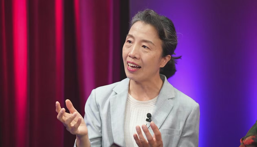 图为中国计生协家庭服务部生育关怀处副处长陈洪梅在节目中