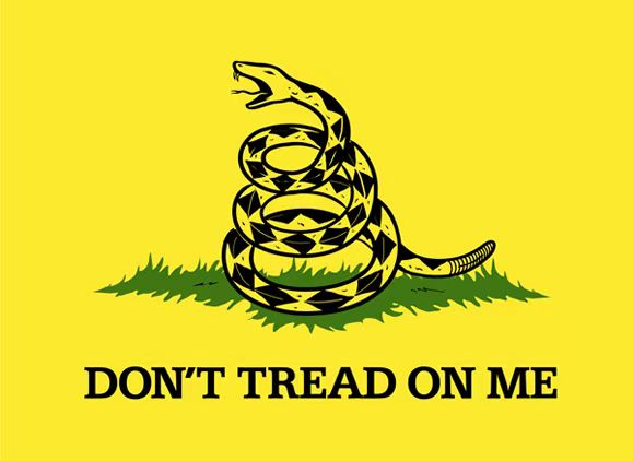 此外,在美国独立战争期间,美方曾广泛使用过一面描绘着一条盘曲着、准备发动攻击的森林响尾蛇的旗帜,称为“加兹登旗”(图12);旗帜图案下方有一标语“Don’t Tread on Me”(不准践踏我)。因为森林响尾蛇广泛分布于美国建国之初的13州,又是北美洲特有的蛇类,使用者希望借此表明自己与欧洲的割裂,以及为独立而斗争的决心。建国之后,这面旗帜在不同时期内仍常被美国民众拿出来使用,比如今年年初发生的“冲击国会”事件中,就有民众举出了这面旗帜。