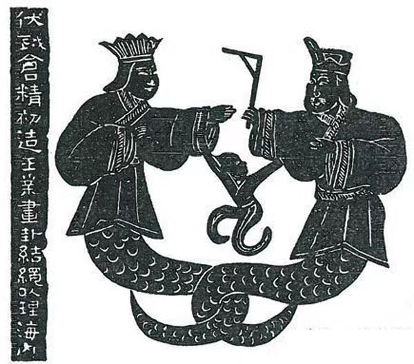 图1 汉代武氏祠中女娲与伏羲的石刻(拓片)图片来源:viewofchina.com
