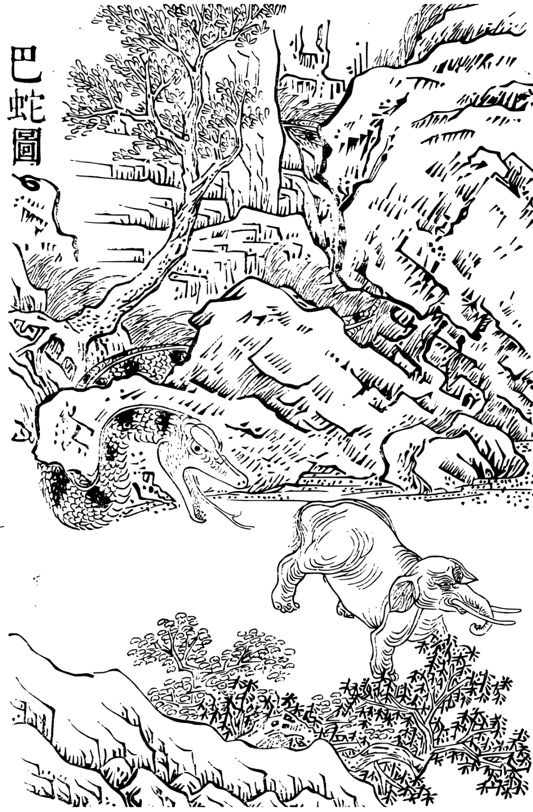 图6 清代《古今图书集成》中描绘的修蛇(巴蛇)(图片来源:维基文库)