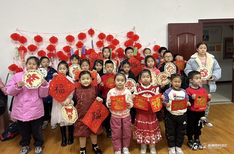 连日来,乌鲁木齐市米东区各社区纷纷举办“群众村晚”,一场场精彩纷呈的文艺活动让居民乐在其中。1月15日,乌鲁木齐市米东区古牧地西路街道汇祥社区举办了一场形式多样的“群众村晚”游园会,猜灯谜、做团扇、写“福”字、剪窗花等活动充盈着满满的年味。图为参与活动的孩子们展示作品。肖鹏 摄