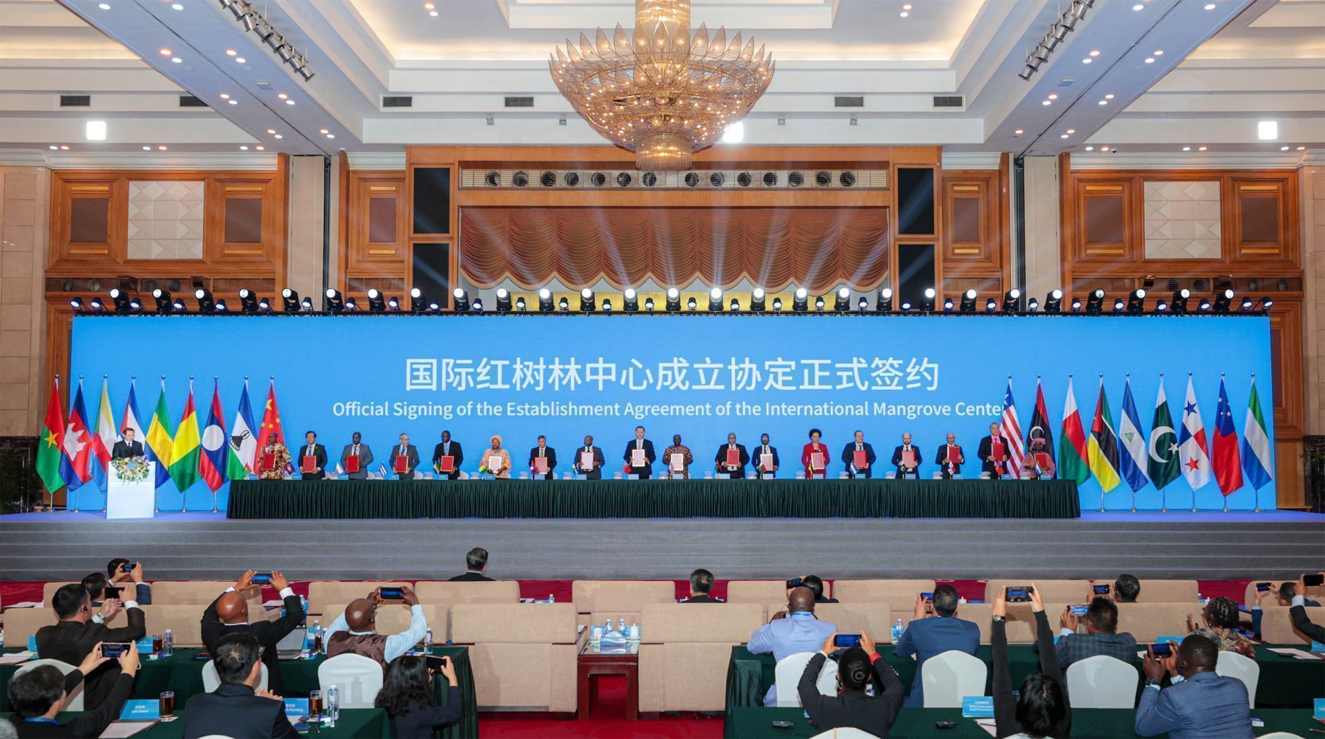 11月6日,国际红树林中心成立协定签署仪式在深圳举行,首批18个成员国代表共同签署协定。深圳特区报记者 何龙 摄