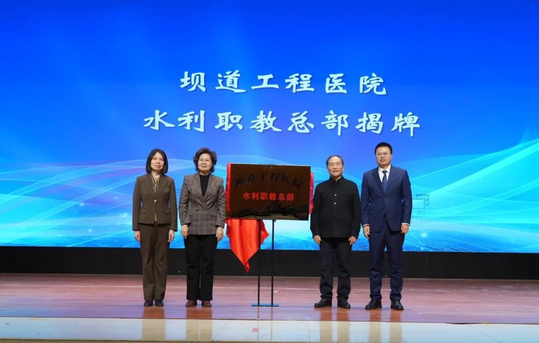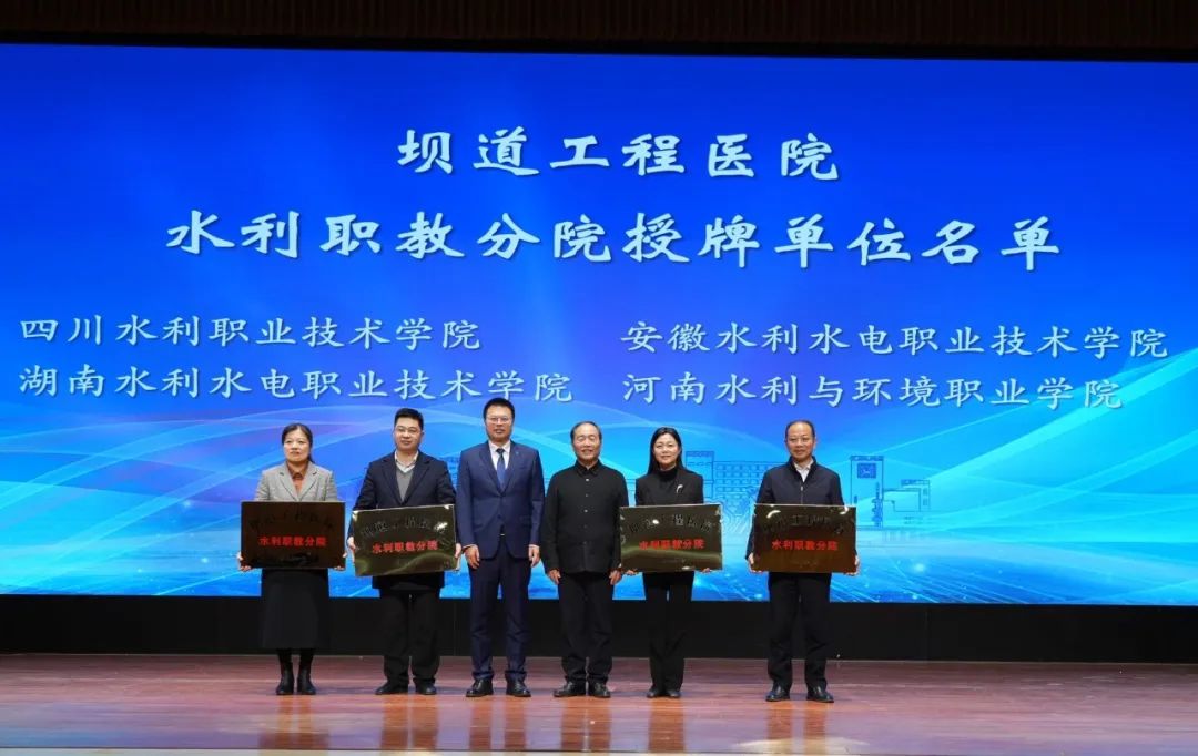 与会领导共同启动了全国智慧水利和水灾害防治产教融合共同体,随后举行了坝道工程医院水利职教总部揭牌及水利职教分院授牌仪式。