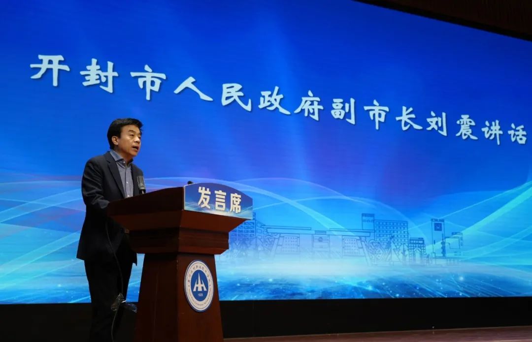 副市长刘震讲话。他介绍了开封市水利行业的发展状况,强调产教融合是推动区域经济转型升级、提升人才培养质量的关键途径。开封经济技术开发区作为开封市经济发展的重要引擎,一直致力于打造良好的营商环境,推动产业升级和创新发展。希望利用好共同体和坝道工程医院水利职教总部的平台,充分发挥政、行、企、校等各方优势,进一步深化产教融合,实现资源共享、优势互补、协同创新,为开封市智慧水利、智能制造等相关产业发展提供有力的人才支撑和智力支持。