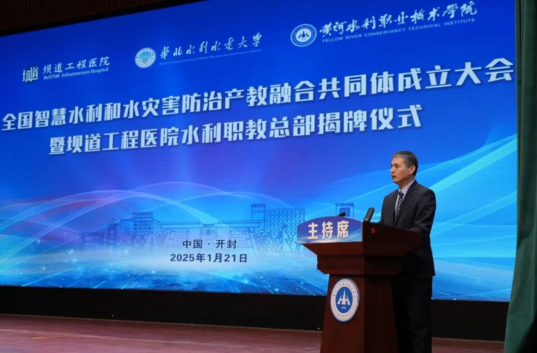 1月21日,由坝道工程医院、华北水利水电大学、黄河水利职业技术学院发起的全国智慧水利和水灾害防治产教融合共同体成立大会暨坝道工程医院水利职教总部揭牌仪式在黄河水利职业技术学院举行。