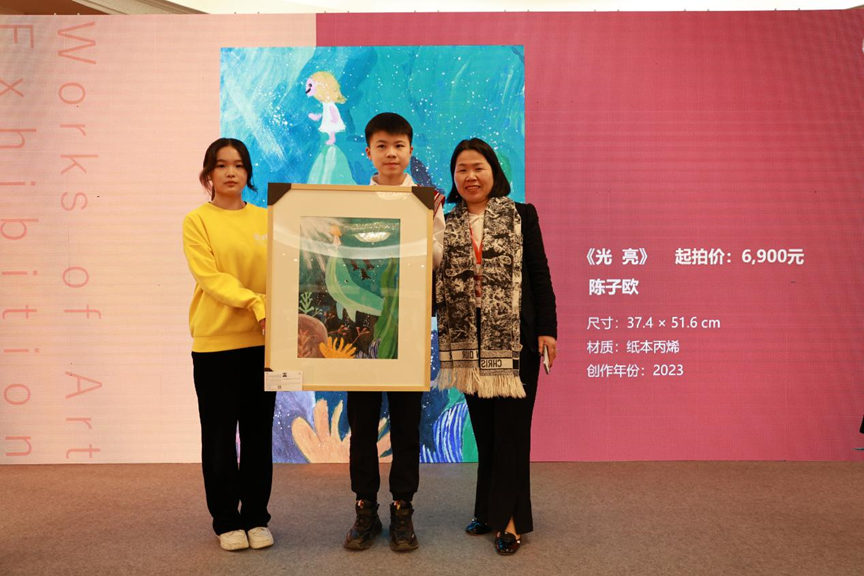 义卖活动现场,一幅幅色彩斑斓、充满奇思妙想的绘画作品整齐陈列,吸引着每一位到场爱心人士驻足欣赏。这些画作均出自孤独症儿童之手,他们以独特的视角和纯真的心灵,在画布上勾勒出奇幻的世界。每一笔色彩的涂抹,都是他们无声地表达,展现着对生活的热爱与对美好的向往。