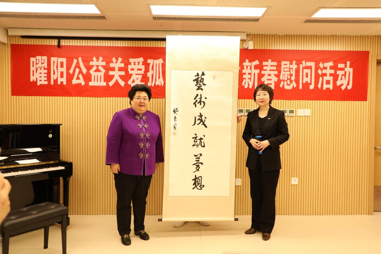 慰问现场,北京曜阳公益基金会与到场的爱心企业、爱心人士共同向金羽翼残障儿童艺术康复中心进行了捐赠,舒惠国书记赠送墨宝《艺术成就梦想》,著名军旅主持人,歌唱家刘建党演唱《我把太阳迎进祖国》,歌唱家陶红深情演唱《好日子》,用实际行动为孩子们的康复和成长提供支持与帮助。爱心志愿者魏嘉卿、王一冰等演唱由凯文作词、戚建波作曲的曜阳公益之歌《爱是阳光》,将关爱活动推向高潮。