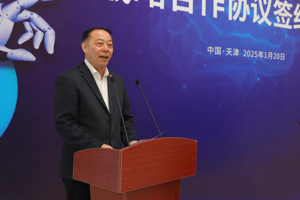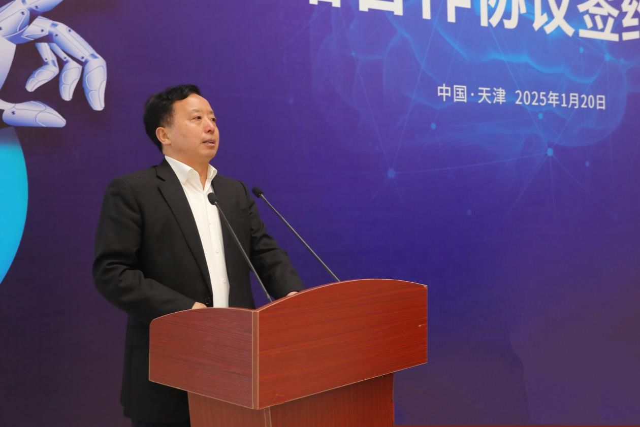 贾世瑞在致辞中指出, 脑机接口与智能交互技术发展突飞猛进,为人类社会发展开启了一个全新的智能时代。新兴际华集团作为中央企业,肩负着推动国家科技进步、引领产业升级的重任。脑机接口与智能交互已经列入集团未来产业发展的战略,集团将致力于汇聚全球顶尖人才,攻克核心技术难题,聚焦应急领域应用场景,打造具有自主知识产权的创新产品。此次战略合作协议的签订,标志着双方将开启全方位、深层次、长期稳定的合作关系。天津大学将为集团输送优秀的毕业生,集团也将为天津大学的学生提供实习实践、科研创新的平台,实现产学研深度融合。