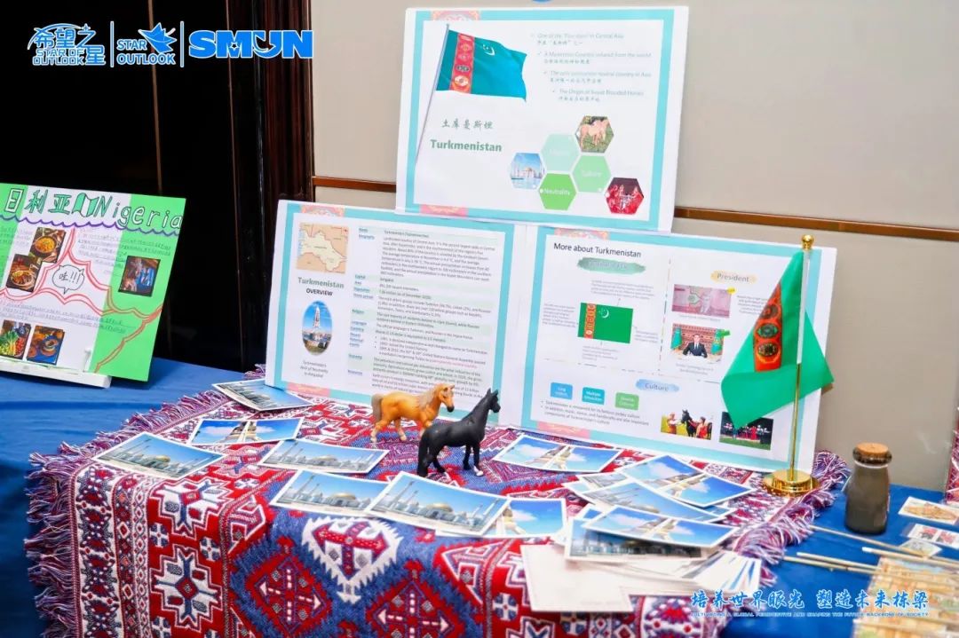 畅谈世界大事,纵览多国文化。在地球村活动中,各委员会代表展现了不同国家的多元文化作品。