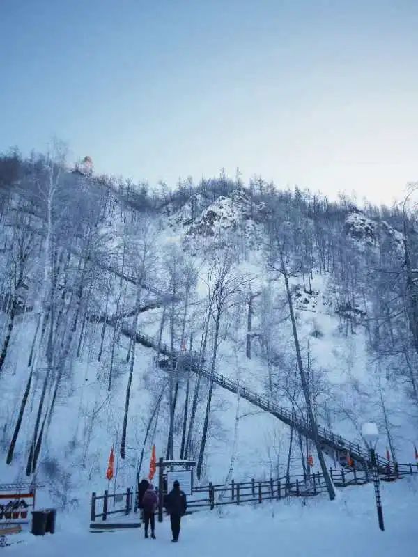 就算避开人为设置的景点,去感受自然的鬼斧神工,也会意外“遭罪”。漠河著名景点,龙江第一湾,是黑龙江回流急转形成的独特景观。想一览壮阔景色,需要在零下十几度的天气,爬完1000多级台阶,“那是一爬一个不吱声”。