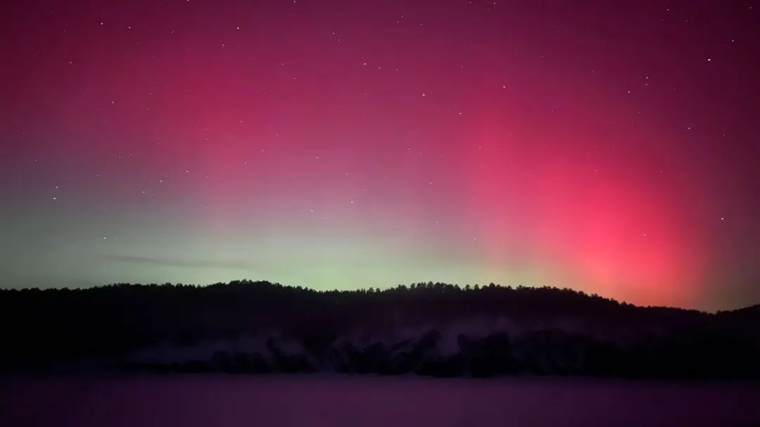 当天晚上七点,司机打电话告诉他,极光出现了。他胡乱穿上衣服,飞奔下楼。肉眼只能看到微弱的红色浮动在天空。在等待相机长曝光的30秒,他激动得忘记了许愿。最终捕获的画面里,整个世界笼罩在绚烂的红色光晕之中,令人呼吸骤停。回到成都之后,他听从司机的建议,花100元买了双色球的彩票,只中了25元。
