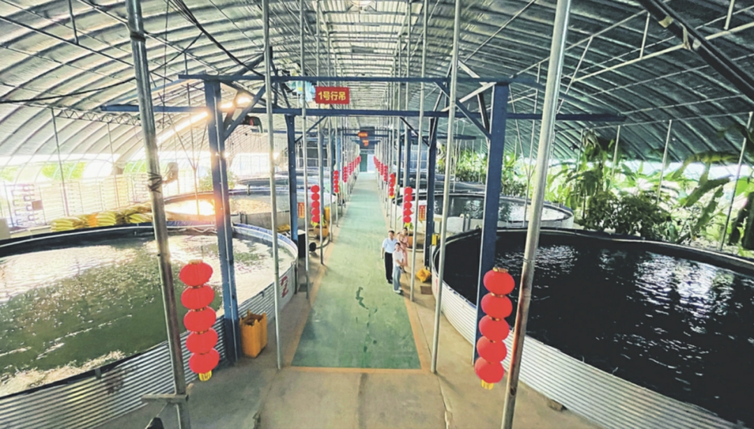 水库旁,一栋近3000平方米的保温大棚格外醒目。大棚内,一个个直径10米左右的圆形帆布鱼池内跳跃着即将上市的罗非鱼。