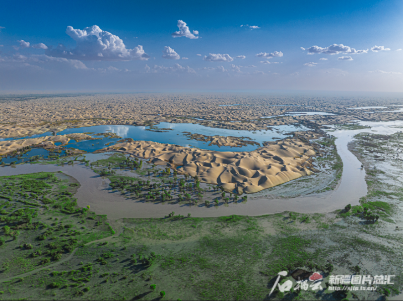 航拍的叶尔羌河中下游湿地自然保护区(资料图)。