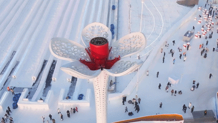 从设计理念到落地实施,“雪韵丁香”主火炬塔以冰雪为媒,以丁香为情,将哈尔滨的地域文化特色与亚冬会“冰雪同梦,亚洲同心”的主题有机结合,成为一座凝聚文化与科技的艺术杰作。