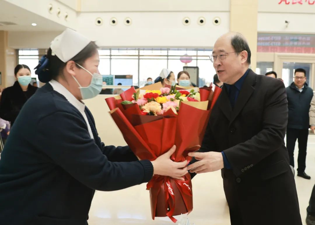 2月5日春节假期结束后的首个工作日,王福俤率队来到新乡医学院附属第一、第二、第三附属医院看望慰问。每到一处,王福俤向医务人员送上新春祝福,亲切交流并送上花束,感谢他们为医院事业发展和学校人才培养作出的努力和奉献。王福俤对他们在医疗救治、教学科研等方面所取得的成绩给予了高度评价,勉励大家要提振精神,迅速从“假日状态”切换到“工作模式”,拿出“起步即冲刺、开局即决战”的精神和气势,明确年度目标任务,实干力行抓好落实,确保新年工作开好头,首季红。