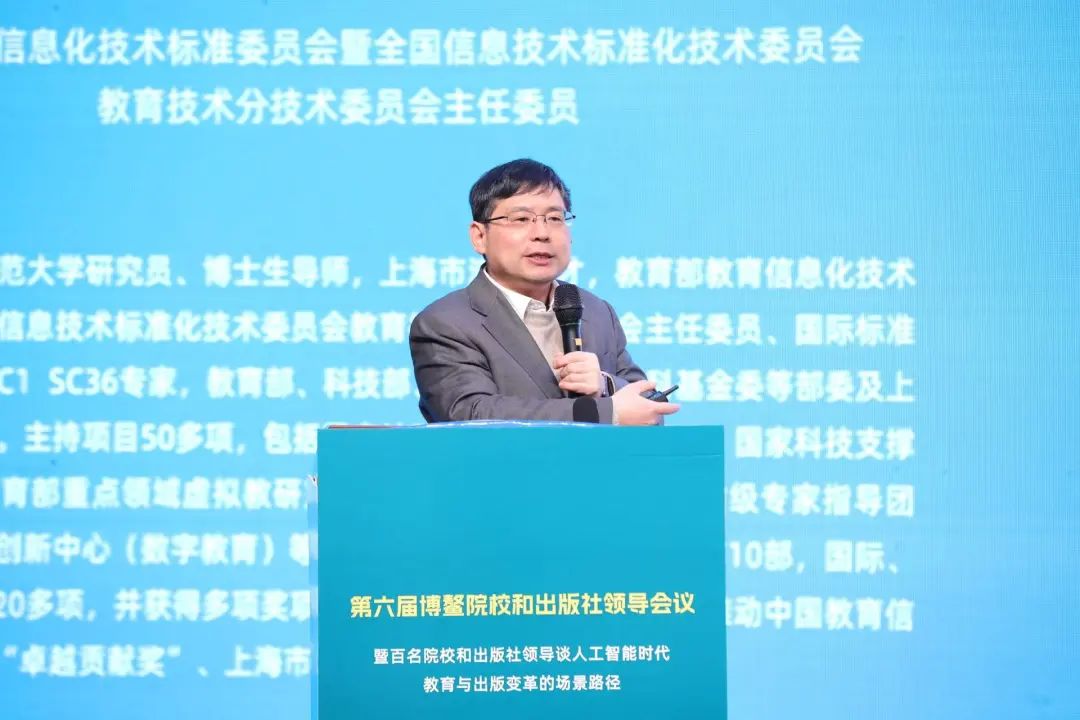 教育部教育信息化技术标准委员会暨全国信息技术标准化技术委员会教育技术分技术委员会主任委员吴永和作题为《人工智能赋能教育教学》的报告,围绕人工智能赋能教育发展新需求、人工智能赋能教育实践新探索、人工智能赋能教育发展新思考三个方面进行深入阐述,分享了一系列在教育实践中应用人工智能的创新尝试,为教育领域如何应对人工智能技术的挑战与机遇提供了宝贵的见解和指导。