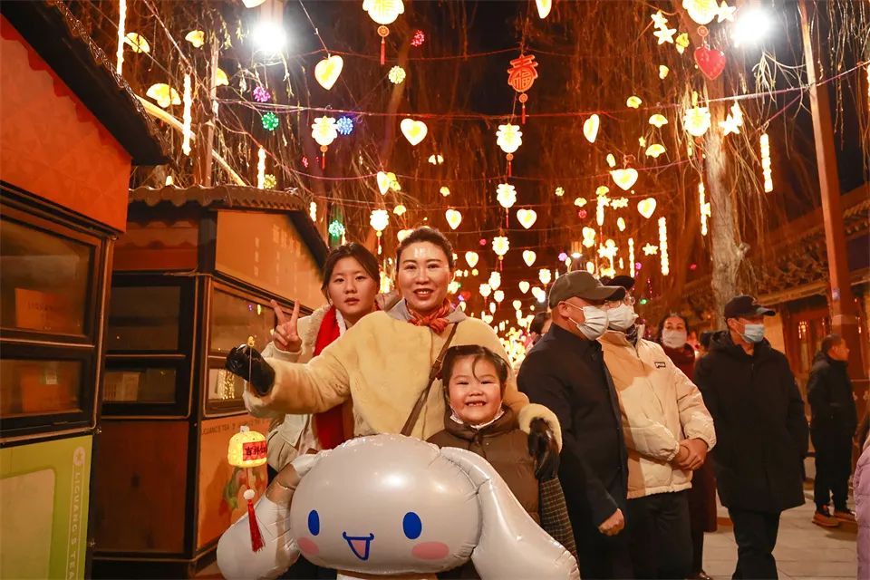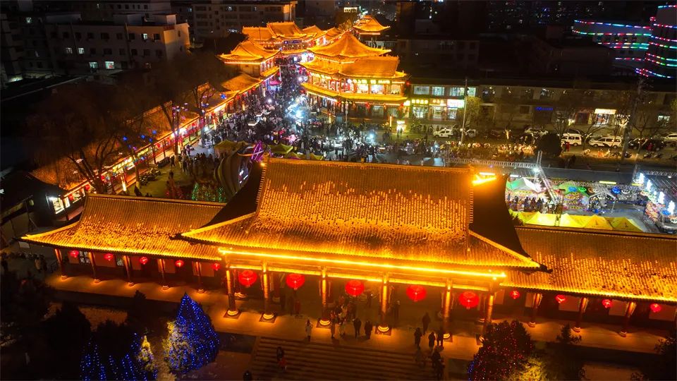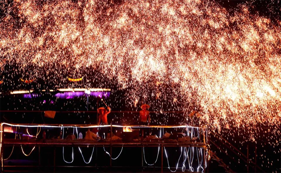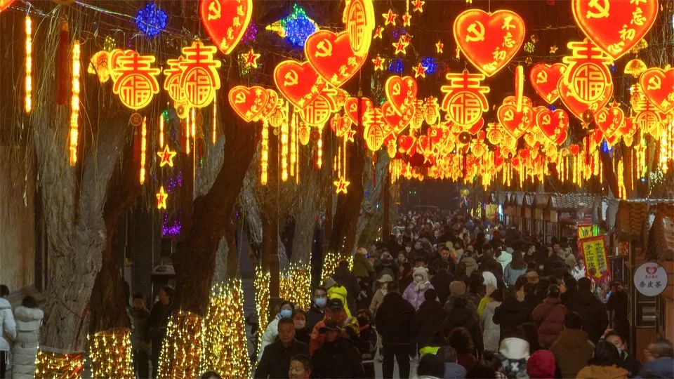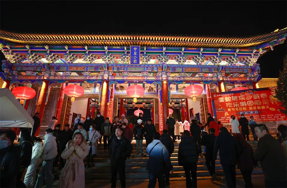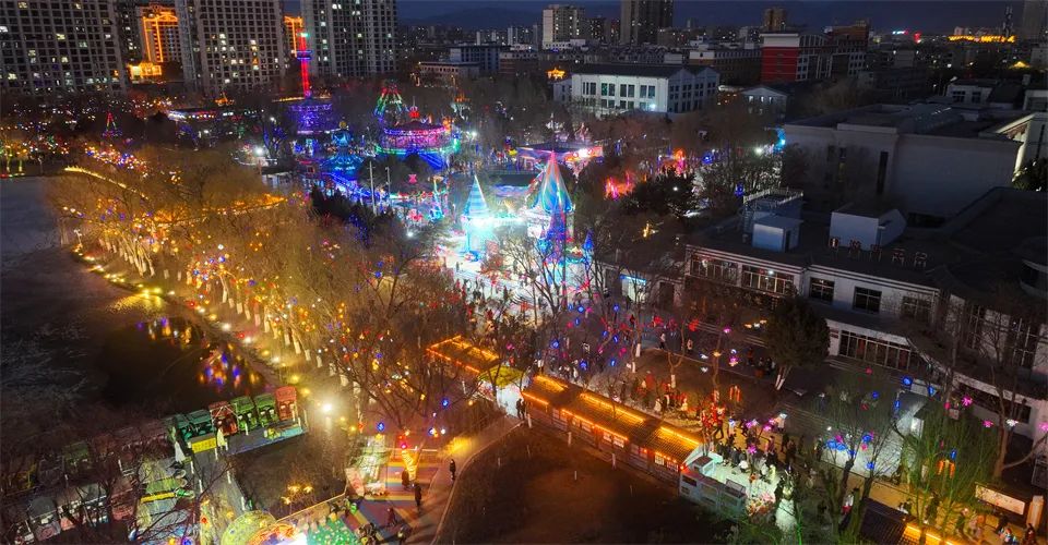 甘州府城内,灯火辉煌、游人如织,人们看花灯、观冰雕,欣赏非遗代表性传承人打铁花表演,参与多彩的民俗活动、品尝地道美食,共同欢庆元宵佳节。