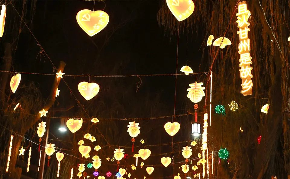 夜幕降临,张掖市甘州区花灯陆续亮起,为元宵佳节增添浓浓的节日氛围。