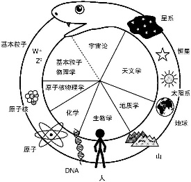 而在现代科学里,这条勇于自我品尝的蛇也颇有建树:世界著名的理论物理学家、诺贝尔奖获得者谢尔登·格拉肖经常把这个符号标上尺度,来表示微观粒子与宏观的统一性。