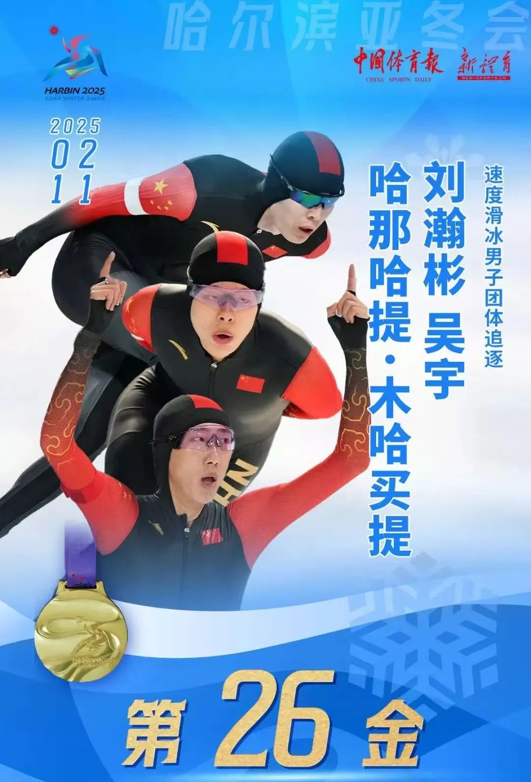2月11日,在哈尔滨亚冬会速度滑冰男子团体追逐比赛中,沈阳体育学院运动员吴宇与队友默契配合,以3分45秒94的成绩勇夺冠军,为中国体育代表团夺得本届亚冬会第26枚金牌。
