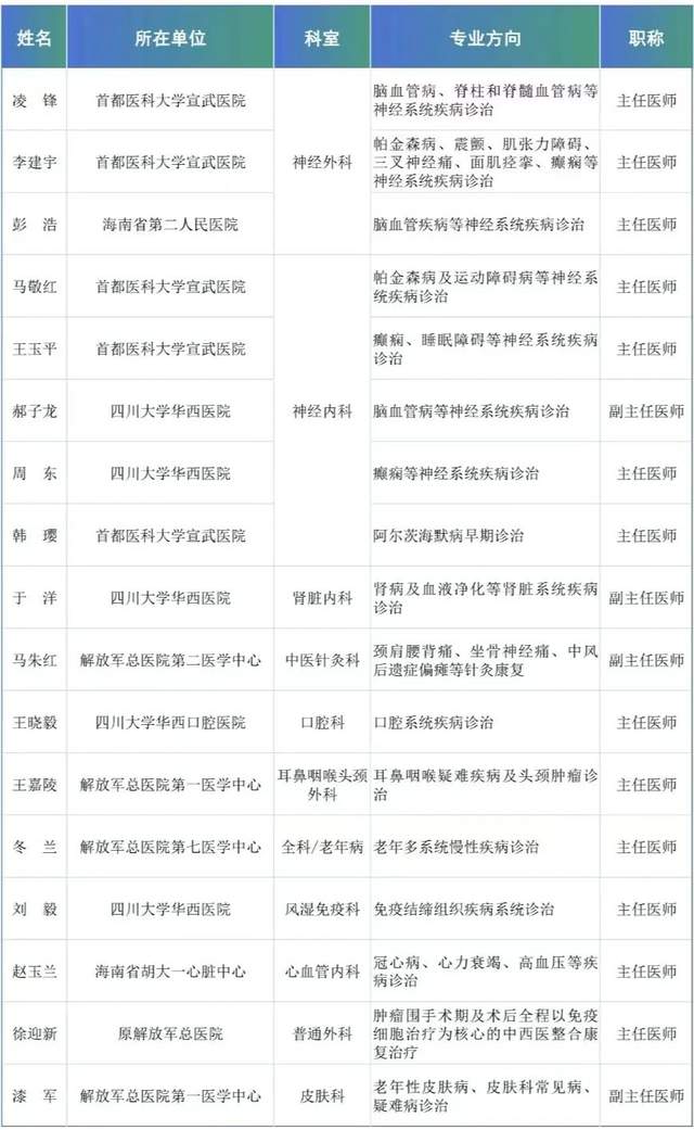 本次义诊集结神经外科、神经内科、普通外科、皮肤科、耳鼻咽喉头颈外科、中医针灸科、全科医学科、风湿免疫科、口腔科、心血管内科、肾脏内科等领域专家。名单更新如下:
