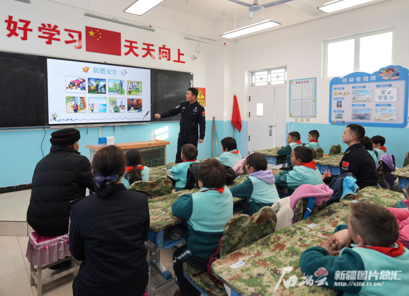 新疆出入境边防检查总站红其拉甫出入境边防检查站民警为孩子们讲解安全知识。张楠 摄