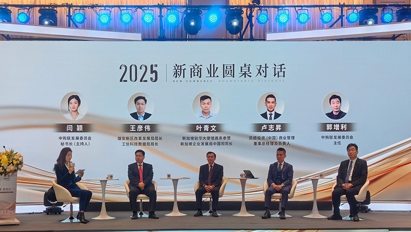 签约仪式后,2025新商业圆桌对话举行。来自雄安新区改革发展局、凯德投资、新加坡企业发展局、中购联发展委员会等4位嘉宾进行商业对话,共同探讨商业发展趋势,解读雄安新区及雄安国贸中心项目商业形态的全新定义。