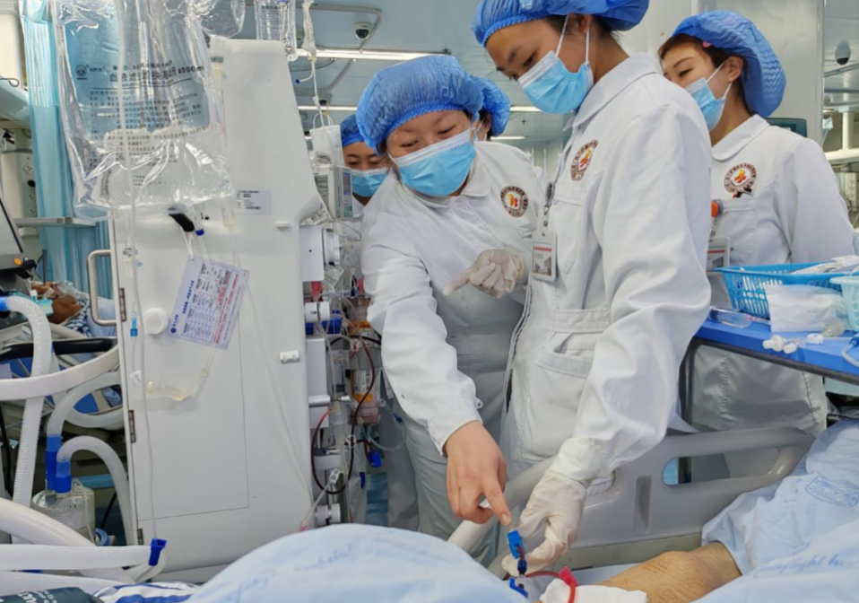 “15床氧饱和度下降,呼吸急促,痰液无法吸出,准备立即插管!”“11床无尿,肌酐高,准备行CRRT治疗!”医护团队相互协作,共同保证每个病人的生命安全。