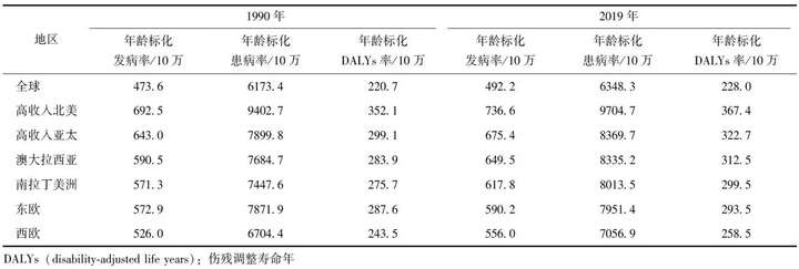 1990—2019年骨关节炎全球疾病负担较重地区的年龄标化发病率、标化患病率及标化DALYs率